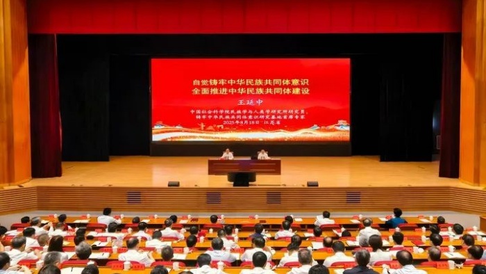 报告会邀请中国社会科学院民族学与人类学研究所研究员王延中作专题辅导。他系统阐述了铸牢中华民族共同体意识的重大意义与丰富内涵,并对建设中华民族共有精神家园、构建铸牢中华民族共同体意识宣传教育常态化机制、推动各民族共同走向社会主义现代化等重点任务进行解读。